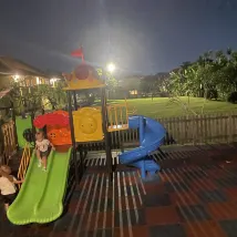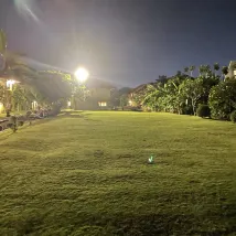 Сам отель достаточно большой, удобно то что располагается в отдельных домиках по четыре номера. Очень большая, но нефункциональное. Есть большое поле, просто с травой, на этом поле можно бы было организовать большую детскую площадку, песочницу, самокаты, какие-то детские развлечения. Очень много детей на территории, но одна малюсенькая горка для совсем малышей. Сам номер очень большой есть гостиная и отдельно спальня, все функционально есть кухня с чайником и холодильником, телевизор, немного посуды, кровать не очень удобная, мне показалось что матрас уже продавлен. В номере было чисто и достаточно уютно, самый главный минус – шторы были белые и совсем не защищали от солнца, которые в полшестого утра уже настойчиво светило тебе в глаз. Очень классный бассейн, есть маленький бассейн где абсолютно безопасно можно плескаться маленьким детям. Завтрак – шведский стол, все достаточно вкусно, но как-то мало разнообразия. Расположение отеля вдали от главной улицы, поэтому шума мотоциклов и автомобилей нет, но до пляжа и до ближайших магазинов нужно ехать на машине или байки минут 10. В целом, отель неплохой можно сказать на слабую четвёрку,
