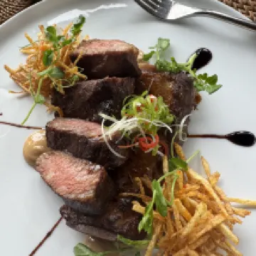1. **Завышенные цены в ресторане.** В среднем, ужин на двоих обходится около \$100, что на 1,5–2 раза выше, чем в других заведениях такого же уровня. Например, рибай за 600 рупий + 21% налог (итого 730 рупий) был тонким, замаринованным, и степень прожарки не соответствовала заказанной. Стейк оставил разочарование. Из всех блюд больше всего понравилось ребро, которое готовится 48 часов — действительно достойно.