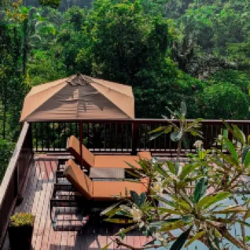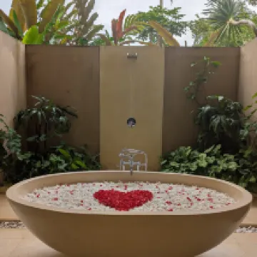 Мы забронировали виллу с видом на джунгли и оценили повышение категории до люкса, чтобы отпраздновать наш медовый месяц. Мы очень наслаждались нашим пребыванием. Душ на открытом воздухе был потрясающим, хорошая ванна с милым декором, а кровать была супер удобной.