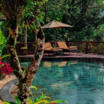 Прекрасное место для отдыха посреди джунглей, недалеко от местной деревни. Не для тех, кто ищет суеты Убуда, до которого 25–50 минут езды, в зависимости от пробок. Зато рядом есть такие развлечения, как катание на квадроциклах, рафтинг и походы в горы. Остановлюсь здесь снова.