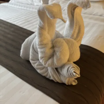 Санитарный парень сложил мне буйвола (он был похож на него)... Я был очень рад😍Охранник был очень ответственным, он держал зонтик и болтал со мной, когда ждал автобус, останавливал машину, когда он ждал автобуса. переходя дорогу, он спрашивал у меня номерной знак и заранее связывался со мной. Гигиена в номере также довольно хорошая.