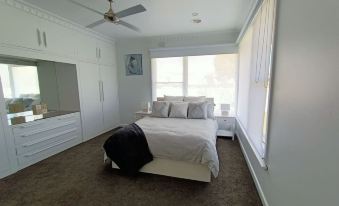 House is sound and freshly painted & renovated, adequate furnishing, all be it that the main lounge has passed it's use by date, Beds were all fine. As for cooling, we have a problem, no coolers in bedroom end of the house and unable to open windows due to over painting was a huge problem, it was bloody hot on Tuesday and front room was in direct sunlight all afternoon. With great effort (tradie experience) we managed to unstick the bathroom and one of the front windows. Definite fans at least required and get the windows sorted would be a must for future summer customers in my book. On another minor level, the kettle is not a switch itself of when boiled type, we had a very steamy kitchen when we boiled it first time. Floors needed a better vac and mop as tiled areas in particular were not as should have been. Is it value for money? yes but as noted, a few areas can be better.
