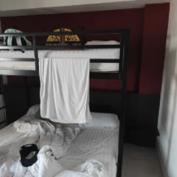 Брали номер Люкс на крыше. Очень классно, что никого нет рядом, никто не ходит мимо, ни хлопает дверями и т.д., как будто на даче. Там есть соседний такой же, но он пустовал, нам повезло. Только вот учитывайте момент, что он на шестом этаже, а лифта нет. Сам номер - это такой деревянный куб на крыше с кроватью и холодильником, с тремя стеклянными стенами со шторами и одной дверью. две стеклянные стены - раздвижные, и через них можно пройти либо на терассу либо в душ-туалет. Всё супер, только двери такие тугие, что прям надо двумя руками и приложить немалые усилия, особенно в сторону туалета. Терасса отличная, очень удобные большие лавочки, на которых и посидеть, и полежать, и поставить что угодно можно, есть свет. Туда бы ещё какой-нибудь вентилятор - и вообще сказка будет. Туалет - это пространство за кубом, в целом отлично, продувается хорошо, сам работает хорошо. Но вот туалет стоит очень близко к душу, хотя пространство вроде позволяет разместить его дальше. Так что когда включаешь душ, судорожно выключаешь и бежишь убирать туалетную бумагу, чтоб не промокла. Её кстати не было в номере, и держателя для неё нет, но вроде была пачка салфеток. Так же во время принятия душа на полу образуется такая лужа, что если после этого захочет кто-то в туалет, ему придется сидеть в луже ногами, может плохо прочищен сток, но довольно быстро утекает. Там кстати два душа, но включаются они одновременно и один при этом сильно горячее. Не хватает какого-то крючка у раковины для полотенца. Внутри совсем нет мебели, ни шкафчика, ни полочки, ,ни тумбочки. одна напольная вешалка. Кондиционер работал хорошо. Расположен очень близко к пирсу, к дворцам, к улице Коасан, далековато от метро, если пешком. Всё, что я написала, не помешало нам с удовольствием провести там время, продлевали несколько раз, уезжать было немного жалко)
