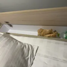 Один из отрицательных моментов, который следует отметить, — это довольно большой зазор между краем кровати и стеной (см. изображение). Если вы из тех, кто много двигается во время сна, вы можете случайно столкнуть свои вещи, и они могут упасть на кровать, лол. Со мной такого не случалось, но просто будьте осторожны, куда кладете свои вещи, и все будет в порядке :)