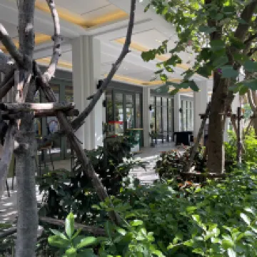 Внешняя территория довольно приятная: зелень, газоны. Есть Lawson, но он не круглосуточный. Также есть массаж и SPA, но они тоже закрываются довольно рано. Во время китайского Нового года вечером по возвращении в отель было трудно записаться.