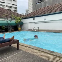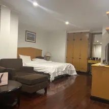 Это мой постоянный отель в Таиланде, и хотя он небольшой и устаревший, я считаю, что он предлагает отличное соотношение цены и качества во многих отношениях. В нём есть балкон, что редкость для центра Бангкока. В нём есть ванна, кухня и кабинет, а рядом с бассейном на крыше даже есть стиральная машина, что очень удобно для тех, кто остаётся на ночь. Но самое привлекательное — это количество ящиков в номере. Я мог просто разложить вещи в чемодане по пакетам, сложить их в каждый ящик, а затем просто закинуть их обратно в чемодан, когда уезжал, что значительно упростило сборы.