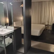 Номер был чистым и опрятным, а обслуживание – хорошим. Завтрак был не слишком обильным, но в нём было всё, что можно ожидать, включая кофе, фрукты, яйца, ветчину и выпечку. Это хороший отель по соотношению цены и качества. Единственное, что мне не понравилось, – это почти полностью прозрачная ванная комната, некуда было повесить полотенца. Ванная комната и туалет были большими, но раковина была слишком маленькой для личных вещей.