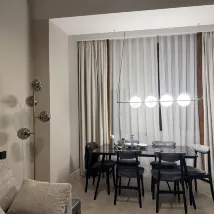 Это обслуживаемый дом, примыкающий к отелю. Он чистый и аккуратный. В ванной комнате есть две раковины. Одной спальни и одной гостиной достаточно для четырех взрослых. Это очень экономично и очень удобно. недалеко от станции метро Diagonal и расположен в самом популярном районе Барселоны, вы можете дойти за 5 минут до знаменитых достопримечательностей La Pedrera и Casa Bartlett. Затем прогуляйтесь по улице и по обеим сторонам есть магазины известных брендов. Мы зарегистрировались на стойке регистрации отеля Fuster. Отель организовал, чтобы официант провел нас в номер и подробно объяснил. Обслуживание было внимательным и помогло нам донести наш багаж до номера. Это действительно был пятизвездочный отель. Обслуживание в отеле Когда мы уезжали, нам помогли вызвать такси до аэропорта. Все сборы взимались по счетчику, дополнительной платы за обслуживание нет, обязательно остановлюсь здесь снова в следующий раз, когда поеду в Барселону.