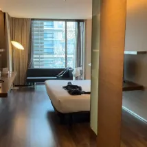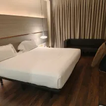 Номер был как раз подходящим: не слишком маленьким и не слишком большим. Отель очень чистый и комфортабельный. Персонал на стойке говорил чётко и терпеливо, даже с нашим ограниченным английским. В номере была барная стойка с напитками, которые можно было заказать за дополнительную плату. Это был отличный отель, удобно расположенный всего в нескольких минутах ходьбы от вокзала, и номер был чистым. 😆