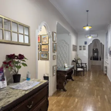 Общее впечатление далеко за пределами двух звезд. Ванная, в которой я остановился, находится за пределами номера, но в номере красивый потолок и мозаичный пол. Также имеется французский балкон с видом на улицу. Лето должно быть отличным.