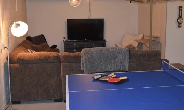 This three-bedroom house provides a peaceful escape for your upcoming trip. Two of the bedrooms have queen beds and the third has two twin size beds. The property has one bathroom with a tub and shower combination. As you step inside, you'll be greeted by a fully stocked kitchen, complete with a stove, oven, refrigerator, microwave, Keurig coffee maker, dishwasher, blender, and toaster, making it easy to whip up delicious meals. Gather around the dining table or outside on the deck with your loved ones and enjoy quality time together. When it's time to unwind, retreat to the cozy downstairs area and catch a movie on the fire TV or challenge your friends to a game of ping pong or vintage video arcade in the game room. If weather cooperates you can take walk around the property or set around the fire pit.