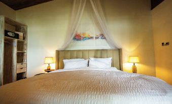 Escape to our serene hilltop bungalow on Isla Bastimentos. This cozy retreat combines modern comfort with the island's natural beauty. It features a spacious bedroom with a luxurious king-size bed, a refreshing bathroom, and thoughtful amenities like Wi-Fi and air conditioning, making it ideal for a relaxing stay.