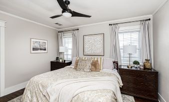 The house is small but nice . The room with queen bed needs a ceiling fan and master bath needs shaded over window in bath