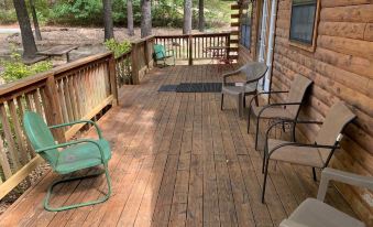 We have three properties located on our piece of nature, all backing up to the woods. Our two rental cabins both have privacy fenced back decks.