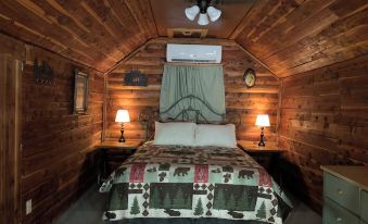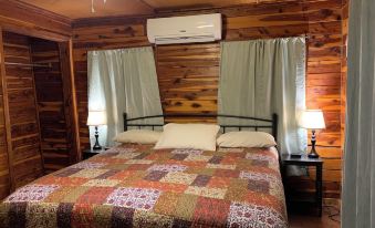This cedar A-frame log cabin has everything you need for a wonderful vacation or just a weekend getaway. It is a wonderful place to stay year round. We have many guests that come to fish, but also many guests that come just to relax. This cabin has a bedroom downstairs with a queen bed and a spiral staircase winding upstairs to the open loft that has another queen bed overlooking the living room.
