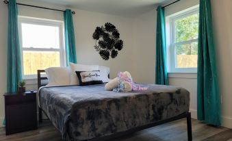 The master bedroom is a cozy and inviting space that connects to the kitchen🙃. You will love the soft and plush queen-size memory foam mattress, the stylish and modern furniture, and the charming turtle and beach themed decor that adorn the walls. A 50-inch smart TV lets you enjoy your favorite shows, while a small work desk provides a convenient spot for your laptop. You can also control the temperature in the room to suit your preference. We have carefully designed this room with your comfort and satisfaction in mind because we want you to feel right at home in our lovely house. This is the perfect place to unwind and relax after a long day of exploring or working.