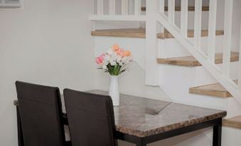 Large dining table. Fully equipped kitchen ( Oven, Microwave, Blender, toaster, pots/pans and other kitchen necessities). Washer, dryer, hairdryer, working station with wifiAbout pets:No pets allowed.About children:Children allowed: ages 0-17.About smoking:Smoking is not permitted.About events:No events allowed.