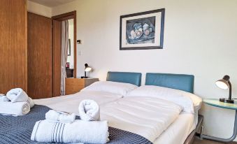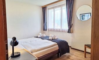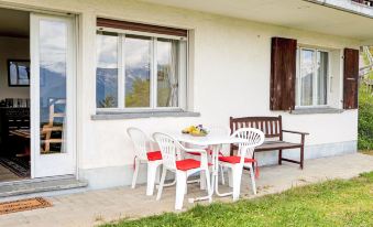 Small, cosy 2-family house. In a quiet, sunny, elevated position on a slope. Narrow motor access to the grounds. Steep footpath to the house. Parking at 50 m. Grocery 1.2 km, supermarket 12 km, restaurant 1 km, bakery 1 km, bus stop "Lood" 100 m. Golf course (18 hole) 12 km, walking paths from the house 10 m, gondola lift 1.5 km, children's playground 1.2 km. Please note: Loading and unloading of baggage is possible at the holiday house. "Chalet Schöpfli", 3-room apartment 65 m2, on the ground floor, south facing position. Bright, partly renovated in 2025, very practical and cosy furnishings: large living/dining room with dining nook and electric heating. Exit to the garden. 1 room with 1 french bed (160 cm, length 200 cm). 1 room with 2 beds (90 cm, length 200 cm). Open kitchen (4 hot plates, oven, toaster, kettle, microwave, electric coffee machine, fondue Set (cheese)). Bath/WC. Electric heating. Heating not available in all rooms. Large patio, south facing position. Terrace furniture, deck chairs. Marvellous panoramic view of the lake and the mountains. Facilities: children's high chair, baby cot for up to 2 year olds (extra), hair dryer. Internet (WiFi, free). Parking. Please note: private entrance.