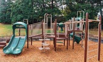 Here for a graduation. We ranged in age from 5-70. It was great for everyone. Lots of toys and games, a deck and a yard for lots of outside play. But the best thing was a lovely little neighborhood park ( with readymade friends) about 2 minutes down a beautiful wooded path next door. All beds were comfortable and everything was perfect!!!!