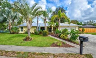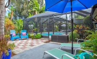 Relax with the whole family in this peaceful tropical oasis. At Casa Amarilla its all about outdoor space and peaceful living. We have everything you need to make the best of your time here in sunny Sarasota. Out tropical outdoor space provides you with a one stop vacation spot. Our lanai includes a pool, tv, eating area, relaxing area, a jacuzzi, a bbq grill, and even recliners! Completely fenced in for small pets. We are just a 17 minute drive from Siesta Key and 22 mins. to the airport!