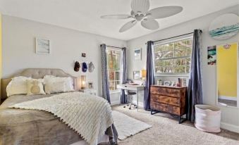 3 bedrooms all have ceiling fans, closets and dressers for clothing storage.
