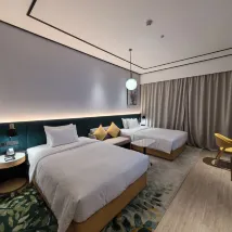 Обязательно ставлю пять звёзд сотруднице ресепшена по имени Чжао! Она была невероятно приветлива и внимательна. При заселении она подробно рассказала об удобствах отеля и времени завтрака, а её неизменная улыбка сделала начало нашей поездки по-настоящему тёплым. Когда мы выезжали, то забыли вещи в номере, и Чжао очень оперативно помогла организовать их отправку. Огромное ей спасибо за такое заботливое отношение и профессионализм!