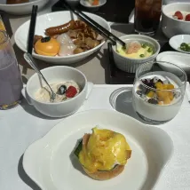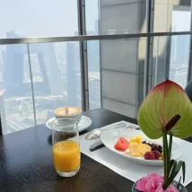 Для регистрации сразу поднимайтесь на лифте на 63 этаж. Больше всего понравился шикарный завтрак в отеле, свежая вкусная малина, много фруктов, разнообразие еды на выбор. Также понравился стильный ремонт в хорошем состоянии и продуманность деталей и удобства в номере. В бассейне есть часть с прохладной водой, есть часть с теплой водой, сауна была хорошая, жаль хамам не работал. Персонал был вежливый и конечно вид из окна на ночной город потрясающий.
