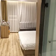 Номер небольшой, но очень чистый. Есть всё необходимое. В ванной комнате реализовано сухое и влажное зонирование, что очень удобно для принятия душа. Раковина вынесена за пределы санузла, что позволяет одновременно пользоваться туалетом и умываться (например, вдвоем). В целом, очень доволен этим проживанием.