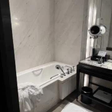 Обслуживание было превосходным. Консьерж помог мне с багажом, как только я вышла из машины, и проводил меня в номер. Номер был просторный и тихий, с большой гардеробной зоной и туалетным столиком. Стол был достаточно большим для работы двух человек. Матрас и постельное белье тоже были очень хорошими.