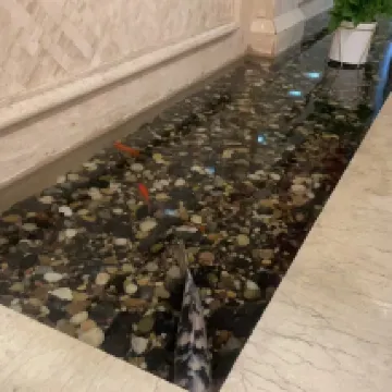 Помещение большое, есть балкон, дышащее, на улице фонтан, сливающийся с природным воздухом.