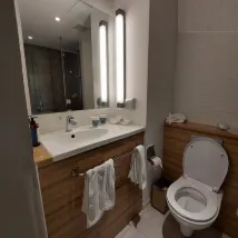 Этот отель – поистине терапевтическое место. Начну с регистрации. Больше всего мне понравилась оперативная работа стойки регистрации: всё заняло меньше двух минут. Они даже заранее предупредили меня о времени завтрака и ночного перекуса (я пропустил поздний перекус, но завтрак был просто фантастическим!). Роботизированная доставка еды была очень удобна. Я приехал довольно поздно, и в целом атмосфера была очень тихой, с хорошей звукоизоляцией. Подушки и матрас были идеальной жёсткости. К тому же, даже маленькие полотенца для рук предоставили! Кто знает, как обстоят дела с полотенцами в отелях? Большие полотенца невозможно выжать. После завтрака я понежился на солнышке, и день прошёл замечательно.