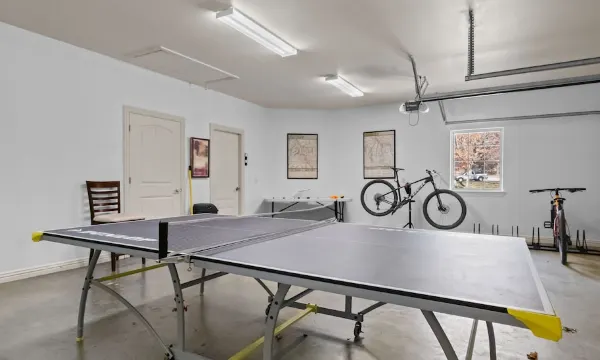 Gravitating back inside you'll find a fun spot to entertain in the garage where we've got a ping pong table, bike storage and bike tooling station. Feel free to open up those garage doors on a nice day and let the fresh air roll in. We also have a hose on the right side of the home for bike washing.