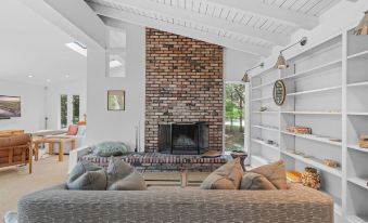 Wander Bellport Park is a secluded and luxurious retreat offering an unparalleled escape in the heart of Bellport. Imagine evenings spent gathered around the crackling fire pit, sharing stories under the starlit sky, the mesmerizing forest views providing a tranquil backdrop. Days are spent lounging by the refreshing outdoor pool, the gentle sounds of nature creating a serene atmosphere. Al fresco dining is elevated to an art form with the dedicated outdoor dining area, perfect for intimate meals or lively gatherings. This exceptional property seamlessly blends the rustic charm of its natural surroundings with the sophisticated comforts of a high-end getaway, promising an unforgettable experience for discerning travelers.