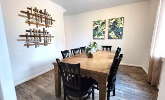 This tastefully updated and decorated home has all the modern amenities you'll need. Centrally located in Bend, we're just minutes away from shopping, restaurants, downtown, Old Mill, and Mt Bachelor. We're thoughtfully stocked with cooking supplies (pots, pans, sauces, seasoning), Smart TVs with cable, coffee, tea, and family-friendly games. All rooms have top-rated memory foam mattresses. Washer/Dryer in home. Towels, linens, shampoo, soap all provided. Fire pit and Gas Grill in fenced in back yard. Cleaned by a professional cleaning service after each stay. Dogs allowed for a one time stay fee of $50. Parking limited to 5 cars.
