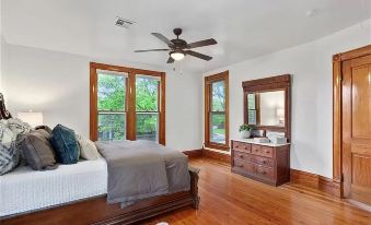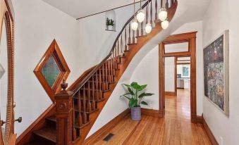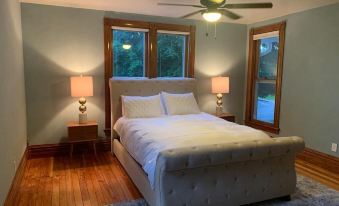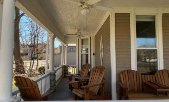 Located just one block from the Bentonville Square, walk to shopping, museums, art galleries, coffee shops, and restaurants from the iconic, restored Victorian home, built in 1902. Also enjoy our wrap-around porch with the perfect view of downtown Bentonville.
