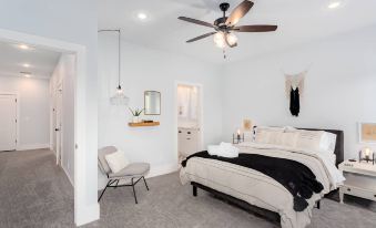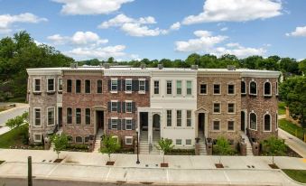 The Brownstone's location in downtown Bentonville cannot be beaten. Just 1 BLOCK from the Bentonville town square & within a 3-minute walking radius to dozens of downtown Bentonville's favorite restaurants, coffee shops, art galleries, & MTB Trails. Newly built, the Brownstone is a top luxury property. 4 bedroom + 3.5 bathroom with a spacious living & a fully stocked kitchen space perfect for groups. Outdoor balcony patio and bike stand, pump, racks, and maps included! A perfect MTB trip.