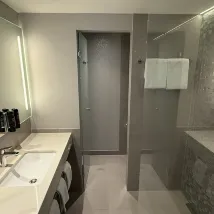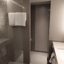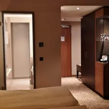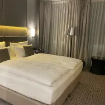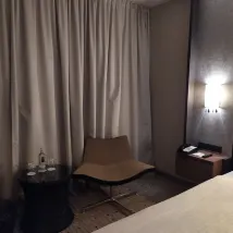 That said, there were some notable drawbacks that detracted from the experience. As soon as we stepped out of the elevator on the 5th floor, there was a strong, unpleasant plumbing odor coming from the toilet area in the hallway. Unfortunately, this issue persisted in our room (583), where the smell emanated from the bathroom. Even after leaving the window open all day, it lingered upon our return, which was quite off-putting. The hotel was fully booked, according to the receptionist, so we didn’t pursue switching rooms. Additionally, the Hocker near the tea table was heavily worn and tattered, almost as if it had been chewed by a cat for years. The mini-bar was disappointingly empty, with just a single bottle of water provided. Sauna was off at 10:30am.