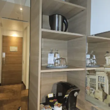 Хорошее расположение отеля. Отличный завтрак, первый раз встретился сок из свёклы. В номере есть чайник, кофемашина и несколько капсул к ней.