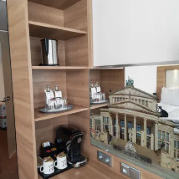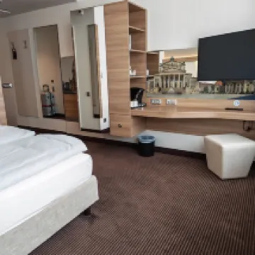 Минусы: хотелось бы минибар или холодильник в номер, также на Александерплатц много стройки и грязно, после 8 вечера место оказалось небезопасным, лучше не ходить через площадь, пристают разные личности. Но в целом в самом отеле все было хорошо 👍