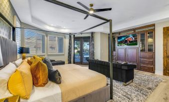 Escape to the Ultimate Vacation Experience at La Dolce Vita Estate! Bursting with Endless Fun & Relaxation. Immerse yourself in the Luxurious Salt Water Pool and Spa, Unwind in the Private Tropical Palm Oasis, & Delight in a Paradise of Abundant Amenities.