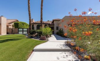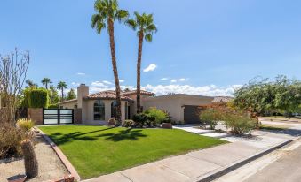 This beautifully appointed home in Bermuda Dunes has undergone a recent remodel with new flooring, tiled showers and a in ground fire pit. The pool is huge and includes a hot tub. The in ground firepit is an artistic conversation piece built by a local artist with recycled materials. Close to shopping, restaurants, golf courses and only 7.7 miles from Empire Polo Club, home of Coachella and Stagecoach festivals and other major events such as Desert Storm tournament and the annual dog show. Located in a small peaceful neighborhood this location offers tons of privacy. Please note that there is an additional charge to heat the pool. $150 per day or $450 per week. The spa is complimentary to use. About pets:Pets allowed: dogs (limit 1 total).About checkOut:Check out before 11:00 AM.About children:Children allowed: ages 0-17.About checkIn:Check in after 4:00 PM.About smoking:Smoking is not permitted.About minBookingAge:Minimum age to rent: 25.About events:No events allowed.