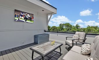 Private rooftop patio features outdoor furnishing for lounging and a smart TV.