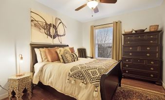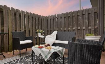 Step inside and be greeted by designer amenities and earthy, luxurious interiors that will take your breath away. Enjoy the ease of self check-in and sink into plush bedding after a long day exploring the city. The fully stocked kitchen and bathrooms cater to your every need, while the fenced patio, complete with a gas grill, allows you to bask in the beautiful Tennessee weather, while the smart TV, ultra-high speed internet, and premium cable channels provide endless entertainment options.