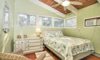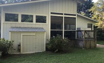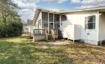 3BR/ 2BA plus queen loft. One king bedroom with TV, one queen bedroom w TV, one room with queen over queen bunk beds, a pullout in the living room, and a queen mattress in a sleeping loft (ladder climb). Comfy screened back porch w TV. Beautiful back yard for birdwatching, wildlife sightings, playing games, grilling.