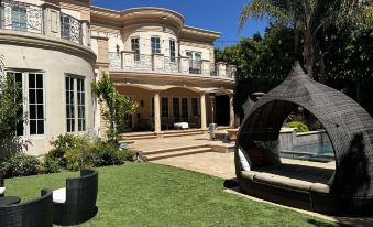 Stunning Villa in the Beverly Hills Flats! This elegant property boasts of 6 bedrooms 7.5 bathrooms, an office/library AND a detached 1br/1ba GUEST HOUSE. This newer home was also completely remodeled about a year ago with a huge chefs kitchen, top-of-the-line appliances, an oversized Butler's Pantry and Island,& a walk-in Fridge. Other upgrades include newer bathrooms, hardwood flooring & an electric SOLAR system, saving money. Enjoy the serenity and security of this gated home with a circular front driveway and hedged off back yard. Upon entering this home, the grand two-story marble foyer and sweeping staircase automatically take your breath away. The upper level offers four large family bedroom en-suites which include TWO gorgeous master suites w/sitting areas, large balconies and walk-in closets. The enchanted backyard features a patio, synthetic easy-to-maintain lawn, pool and spa. This home is located in a PRIME LOCATION in close proximity to shops, restaurants & Rodeo Dr