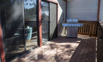 For those who have an interest in working remotely, there’s a desk nook off the living room. There’s also a large upper deck complete with a BBQ and some adirondack chairs. You’ll even catch a peekaboo view of the lake!
