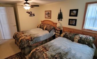Cozy cabin on over two acres surrounded by the Huron National Forest. It's located 300 feet from ORV/snowmobile trailhead, a half mile from the AuSable River, and one mile from canoe/kayak rental at Parmalee Trading Post. Garland Golf Resort is just 10 miles North. There is a large fire pit in the backyard and lots of space for yard games. The cabin has gas and charcoal grills, fast Wifi Internet, central air, and DISH TV. If you're looking for a relaxing northern getaway this is the place for you. There is one security camera/floodlight on premises pointing at the driveway in front of garage. This is used for monitoring property when no guests are present.About pets:Pets allowed: limit 3 total.About checkOut:Check out before 11:00 AM.About children:Children allowed: ages 0-17.About customRules:Bonfires allowed only in backyard fire pit..About checkIn:Check in after 3:00 PM.About smoking:Smoking allowed: in designated areas.About minBookingAge:Minimum age to rent: 21.About events:No events allowed.