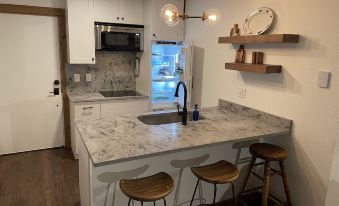 This remodeled condo is small, clean, cozy, and inexpensive.