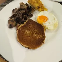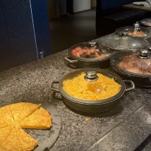 Хорошая обстановка, тишина, большой зал, ужин был доставлен вовремя, стейк был нежным и вкусным, завтрак был очень хорош для западной кухни, очень сытный и стоил того. Единственный недостаток — волосы на раковине и фене, их нужно улучшить.