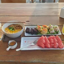 The place was what I was going for just to relax by the water (sea) and not crowded because it's not a big place. Definitely not for big groups. The staffs were very friendly Lun, Tika and the others. The Chef (Chef Betty) was very creative and made an effort to create dishes for someone who is not able to have anything gluten. I did not asked but it was all her initiatives. It made you feel welcomed. The service was top notch! Kudos to all!!!